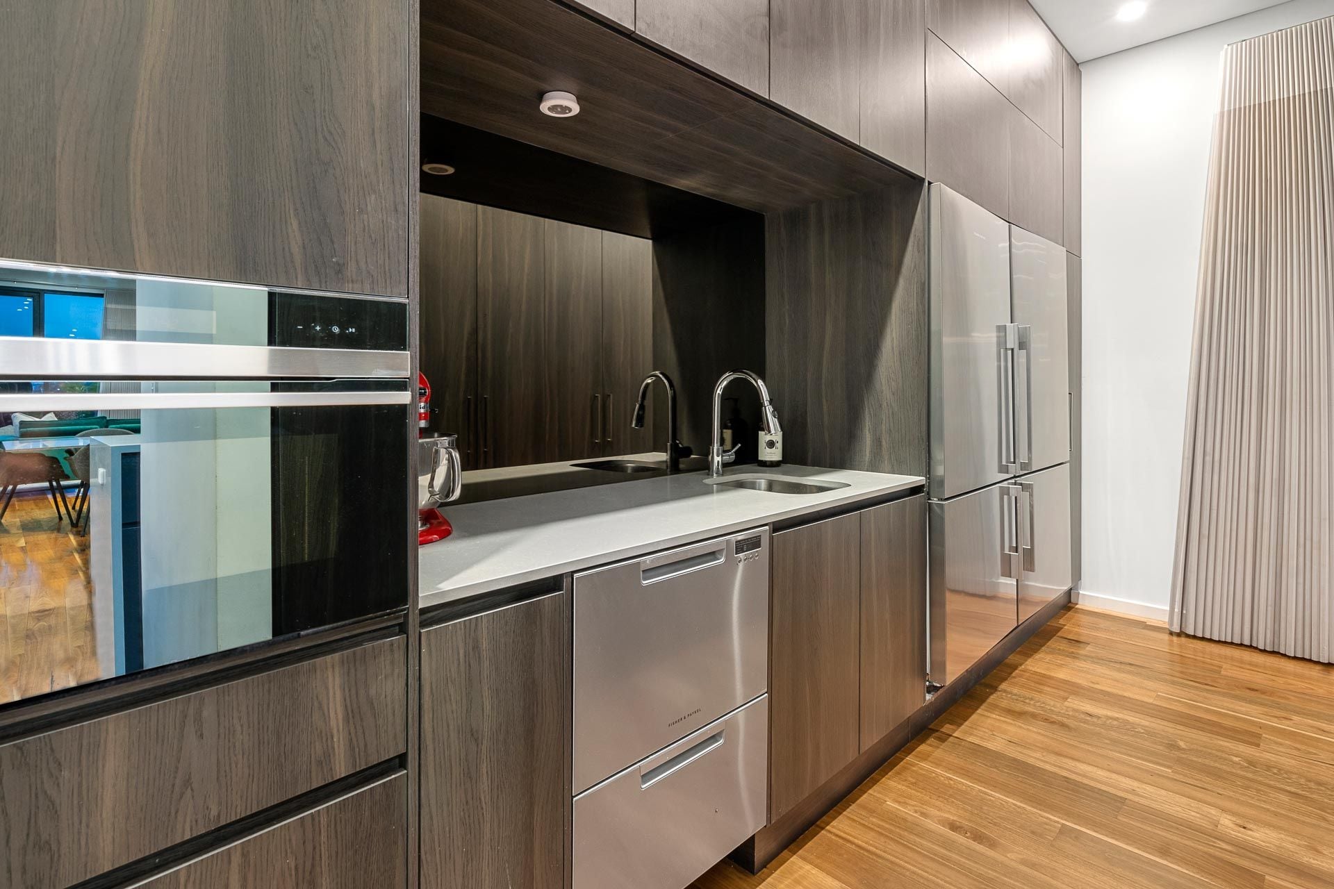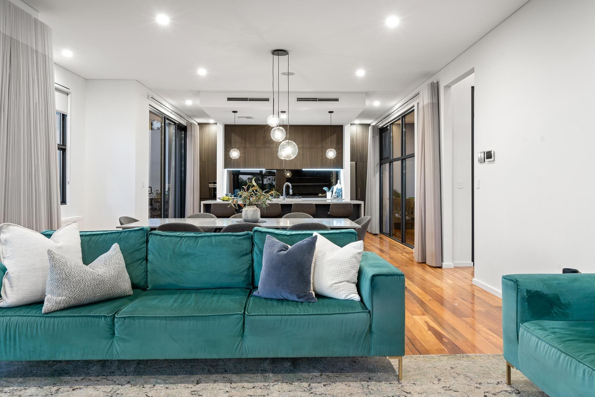 An extremely well equipped open-plan kitchen (plus scullery), overlooks an amazing light filled space that includes a dining area and family living.
