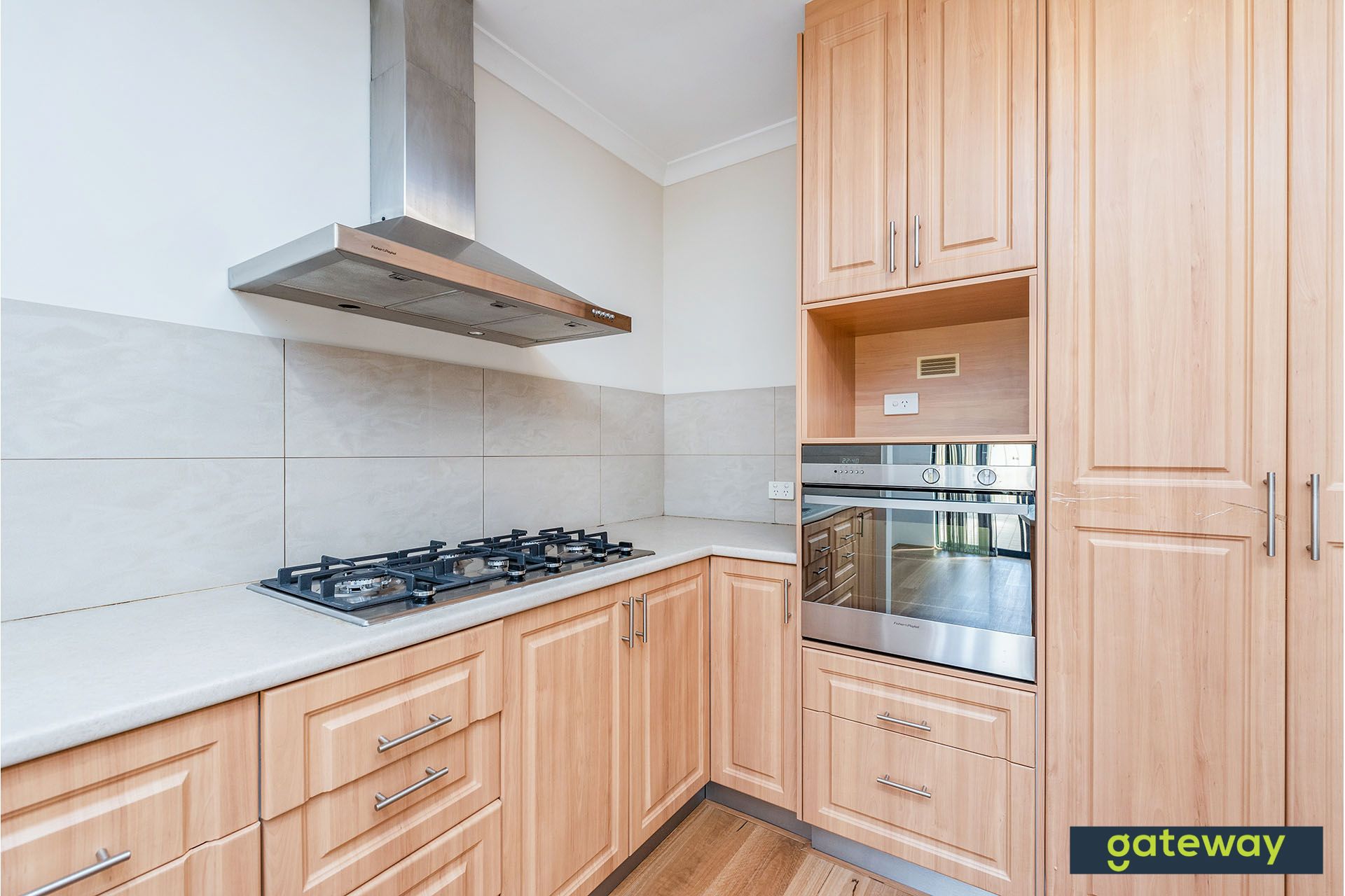 -Kitchen with gas cooking and plenty of cupboards and storage